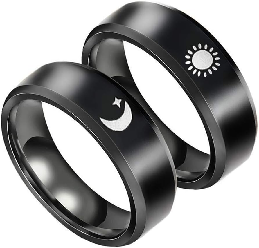 Anel preto de sol e lua de aço inoxidável de 6 mm para noivado e aniversário de casamento, Aço inoxidável