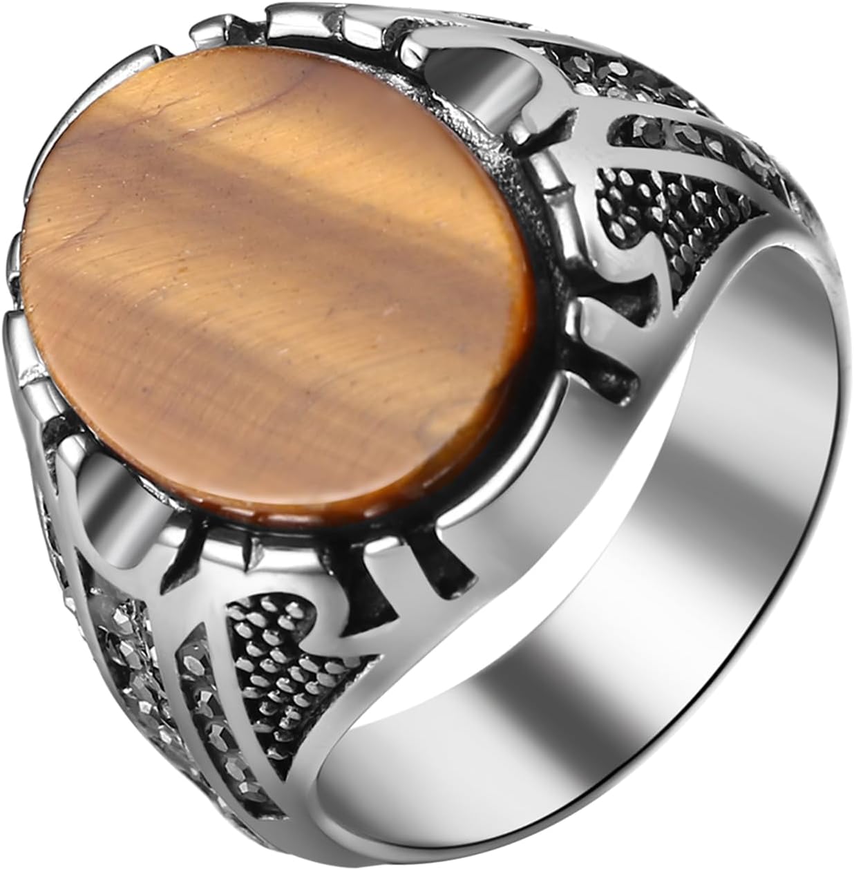 Aroncent Anel oval vintage olho de tigre: anel de sinete de aço inoxidável – joia clássica para homens