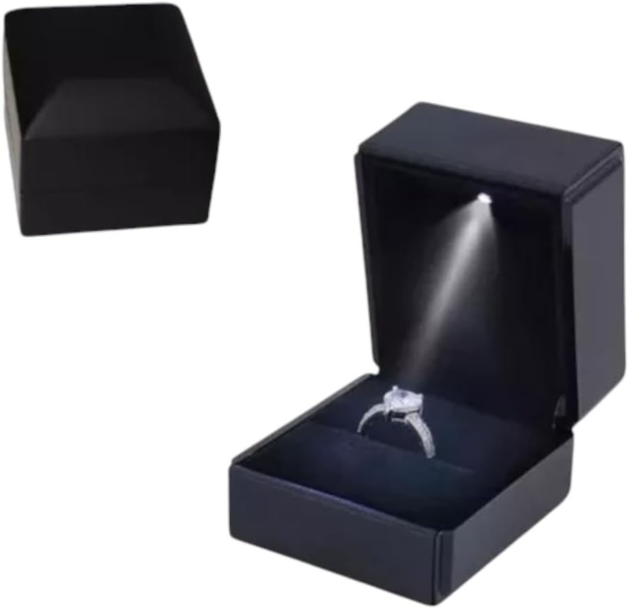 Caixinha Para Anel Solitário Led Presente Noivado Namoro (Preto Luz Led Veludo)