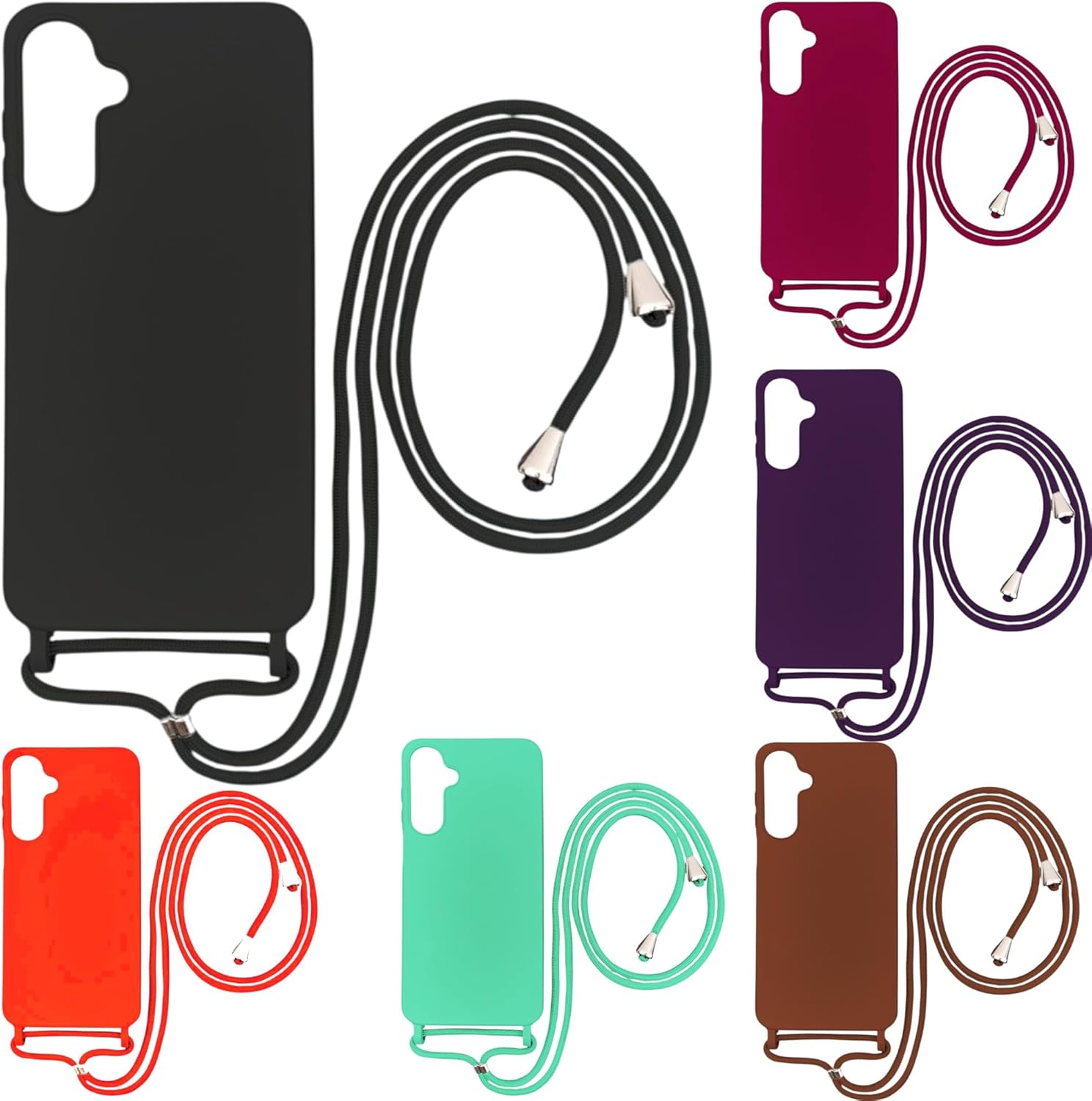 Capa de telefone com cordão transversal para Samsung Galaxy S23 FE 5G S23FE, capa de telefone de silicone com alça de colar ajustável, cordão de pescoço macio, cordão de pescoço (CHOCOLATE)