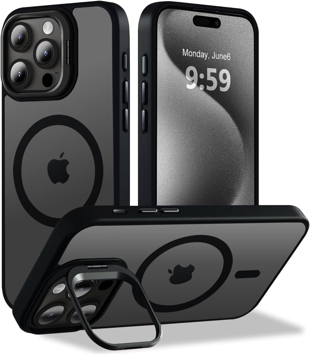 Capa Magnética Transparente para iPhone 15 Pro – Suporte Dobrável para Câmera, Bordas Reforçadas e Design Premium, Stand – Diffy (Preto, iPhone 15 Pro)