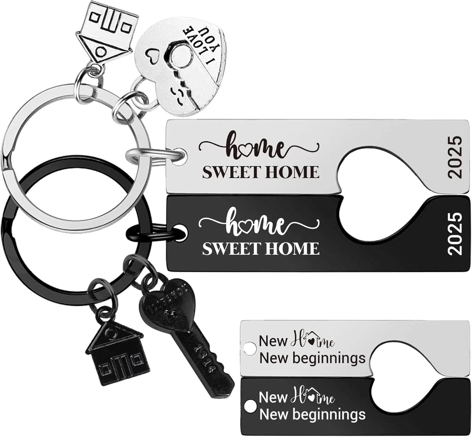 Chaveiro de inauguração de casa para casa nova – Presentes de aquecimento de casa doce 2025, 2 peças chaveiro para novos proprietários para casais amigos