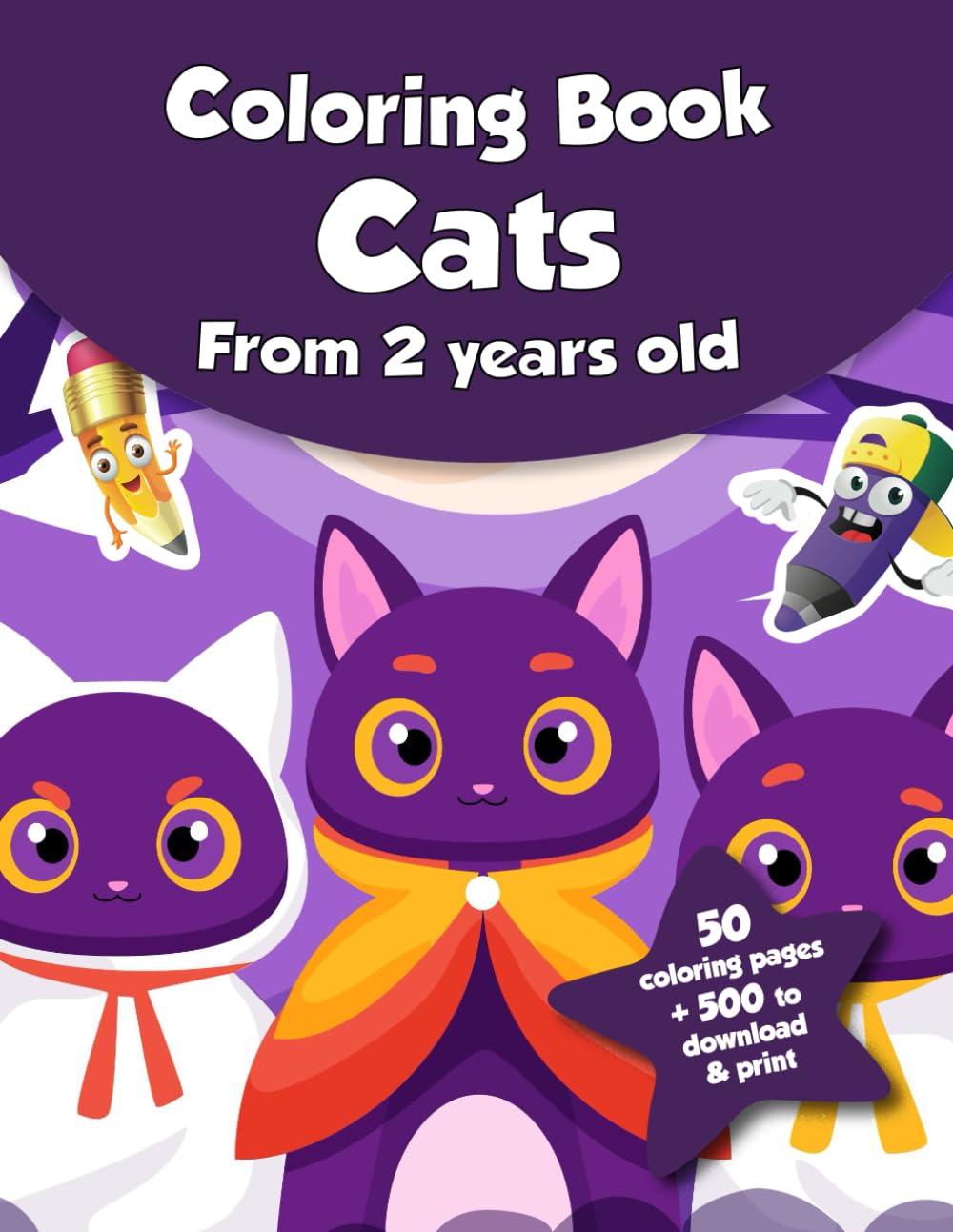 Coloring book for kids – Cats (from 2 years old): 50 coloring pages + 500 to download & print!