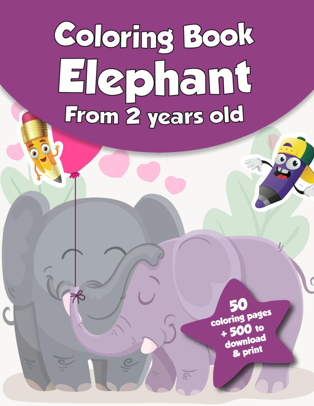 Coloring book for kids – Elephants (from 2 years old): 50 coloring pages + 500 to download & print!