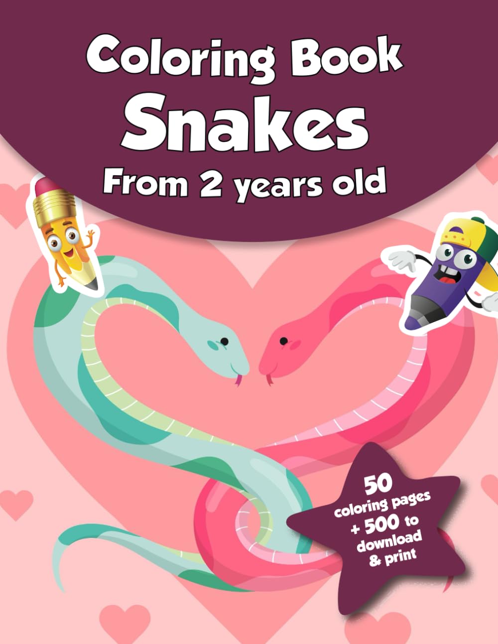 Coloring book for kids – Snakes (from 2 years old): 50 coloring pages + 500 to download & print!