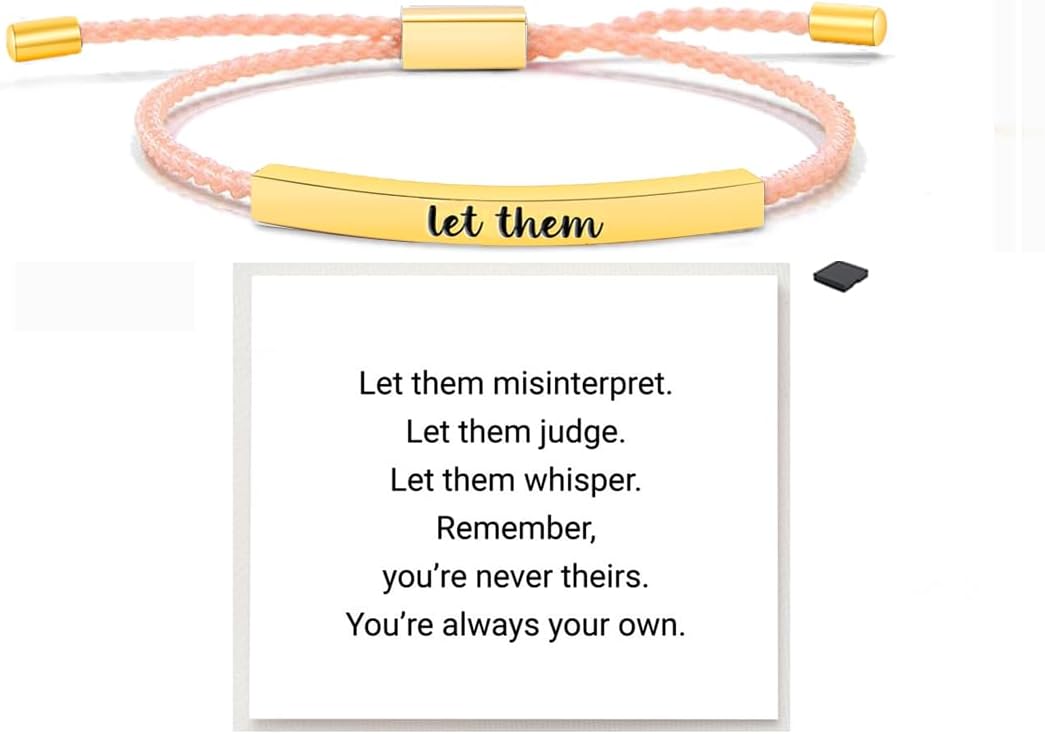 DIOWUS Let Them Misinterpret Pulseira de tubo para mulheres, para irmãs de irmandade, melhores amigas, inspiradora, aço inoxidável, amizade, autovalor, motivação, presente joias