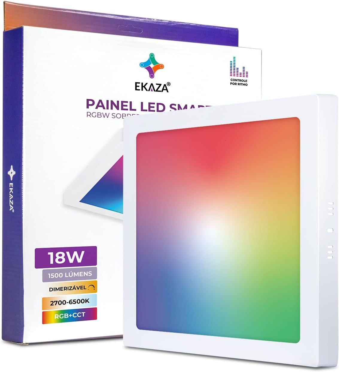 EKAZA Painel de LED Inteligente Wi-Fi e Bluetooth de Sobrepor Quadrado RGB + Dimmer, 18W, 1500L, 2700k-6500k, Compatível com Google Assistente e Amazon Alexa – EKHM-T2018SQ