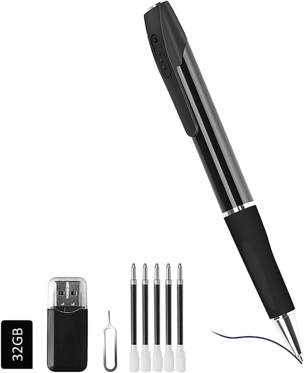 HOHOPROV Mini câmera com caneta, câmera de segurança pequena HD 1080p, câmera de babá recarregável de 32 GB