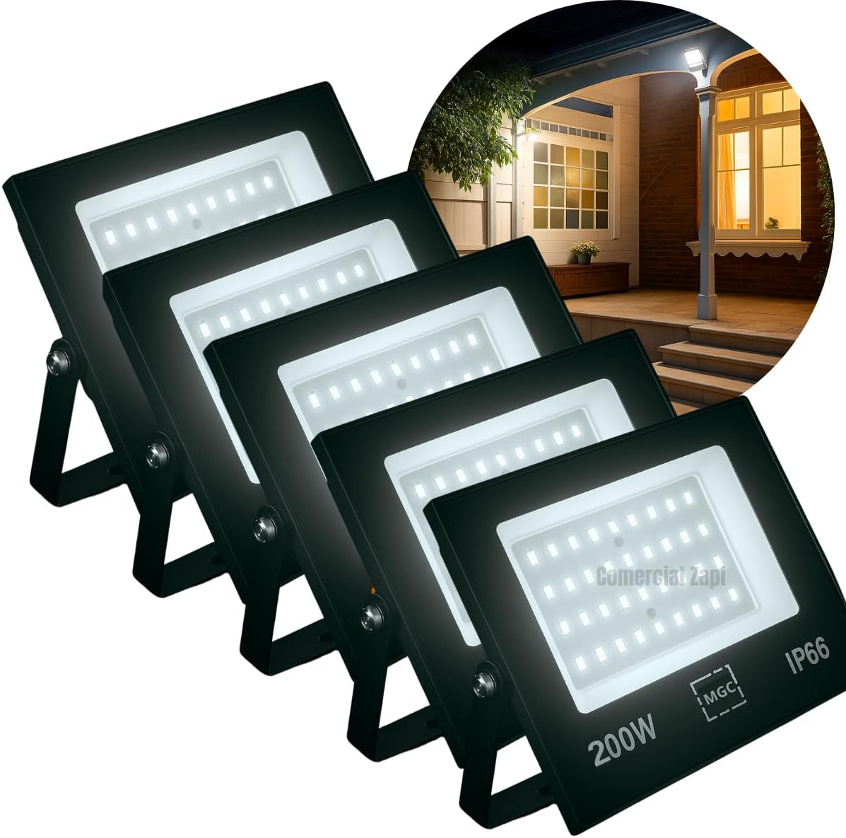 KIT 5 Refletor LED 200W Holofote Bivolt Branco Frio IP66 SMD à Prova D’Água, Luz Alta Potência para Fachadas, Jardins, Piscinas, Eventos, Iluminação Moderna, Eficiente e Econômica – Linha Premium
