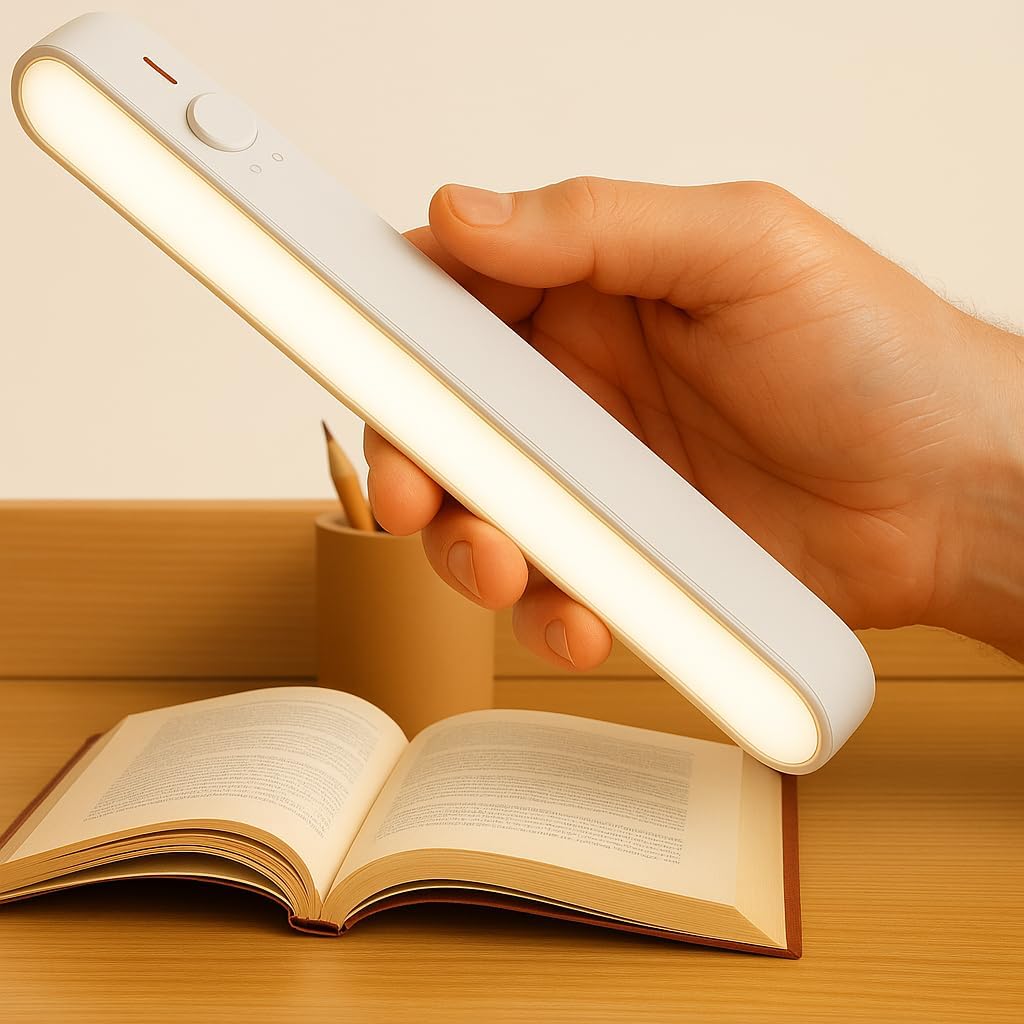 Luminária LED Barra Recarregável USB – Sem Fio Versátil para Parede Armário Cozinha e Banheiro – LED para quarto & Leitura Luz Ajustável Quente e Fria, Design Slim e Durável