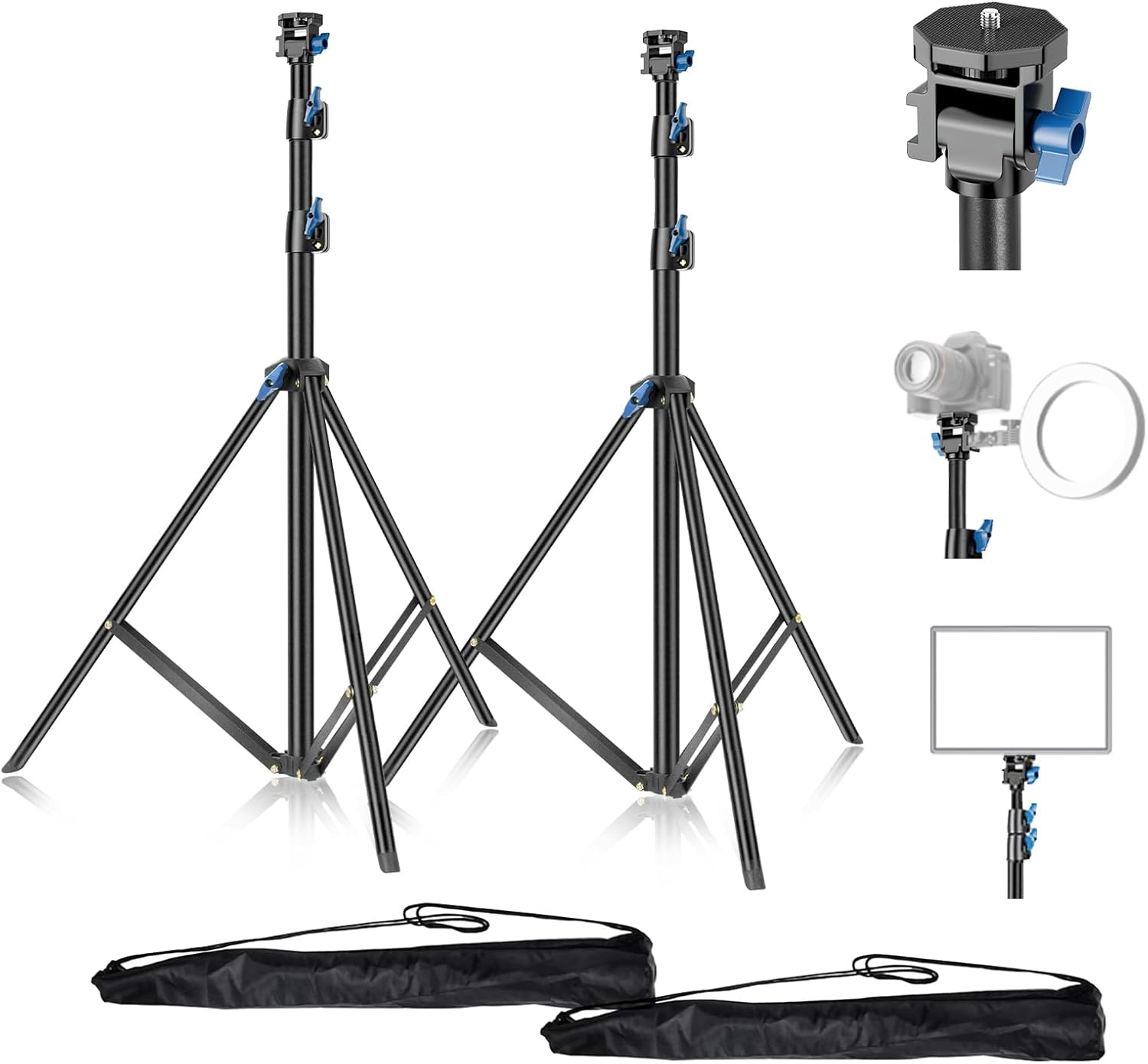 【Grande capacidade de carga】O suporte de luz atualizado é feito de metal resistente que é durável e mais estável para segurar o equipamento de luz, câmera, telefone etc.